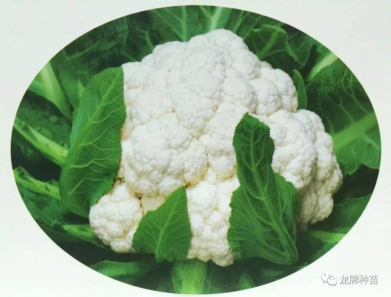 特征特性:①一代金光120天是一代交配的杂交种,其F1代优势特强。②该品叶面起皱,叶柄扁宽,叶面网脉明显。长椭圆形,立性生长,蜡粉很多,心叶合包花球,大叶片22张,宽25cmX长55cm。③结球时大得快,耐寒,抗病强。花球洁白,非常厚实重叠,份量重。因球大须半折叶片紧盖花球。能耐低温零下3度。④长江流域公历7月下旬播种。⑤该品是春节之前上市的品种。亩栽2100株,丰产地亩产约5000公斤。⑥成熟后的花球不易散花,耐运输。