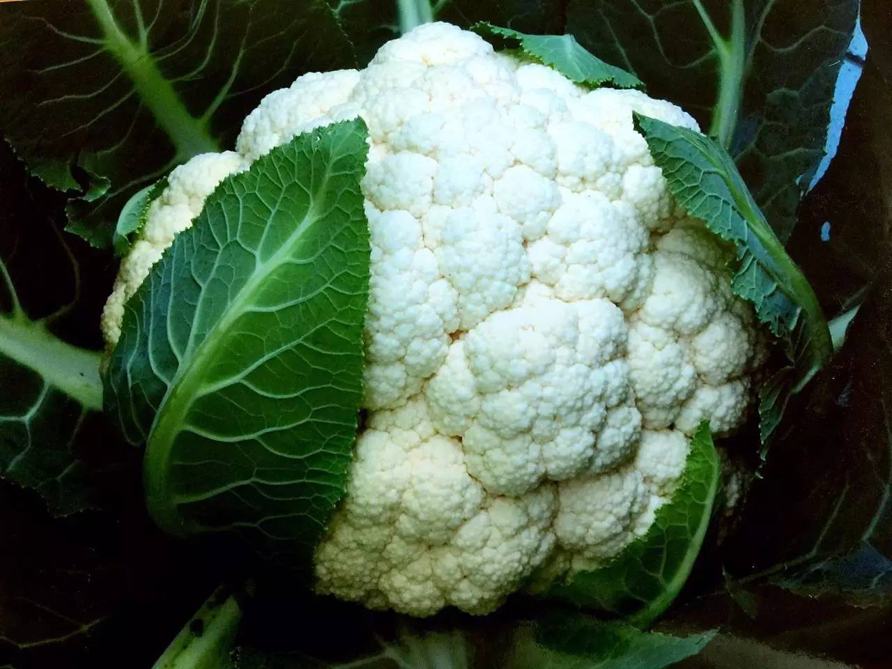 特征特性:①一代金光春花菜80天品种是蕾期交配的杂交种,其F1代优势特强,比普通杂交种产量提高100%以上。②该种适应范围广,从定植至采收80天。③该品种生长力强、抗病、耐热、耐寒、叶片淡绿色长椭圆形,叶网脉明显。株形矮壮,花球洁白,心叶合包花球,球形圆整紧实。④长江流域公历12月1日播种,温棚育苗越冬,2月上旬定植,5月上旬上市。⑤黄河流域1月1日播种,东北、西北2月1日播种。最大花球重2公斤。亩栽3000株,丰产地块亩产4000公斤。⑥本品不能夏播秋种。